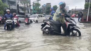 Pengendara Hadapi Pilihan: Menunggu Surut atau Menerjang Banjir